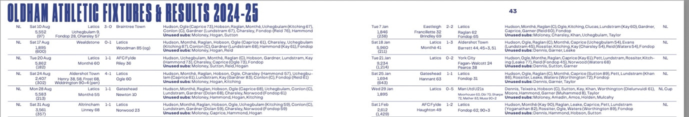 From the new year onwards, I placed in the programme a small and sometimes bigger plea to readers to give me their views. This was possibly the first time any editor of the matchday programme had shown that level of respect to the readers. I put the same thing out to the many brilliant volunteer and in-house contributors. From their submissions, a number of solid proposals emerged. None of them was any different to what you could read in other programmes, and were in that sense conservative. Interviews with former players (the more recent the better); a puzzles and quiz page; more in-depth coverage of the opposition; a greater personality-driven focus on the Oldham Athletic Women and the Academy, which is very much up the club’s street at the moment because of its direction of travel in further education; general football op-eds, which gets its own little section down below.